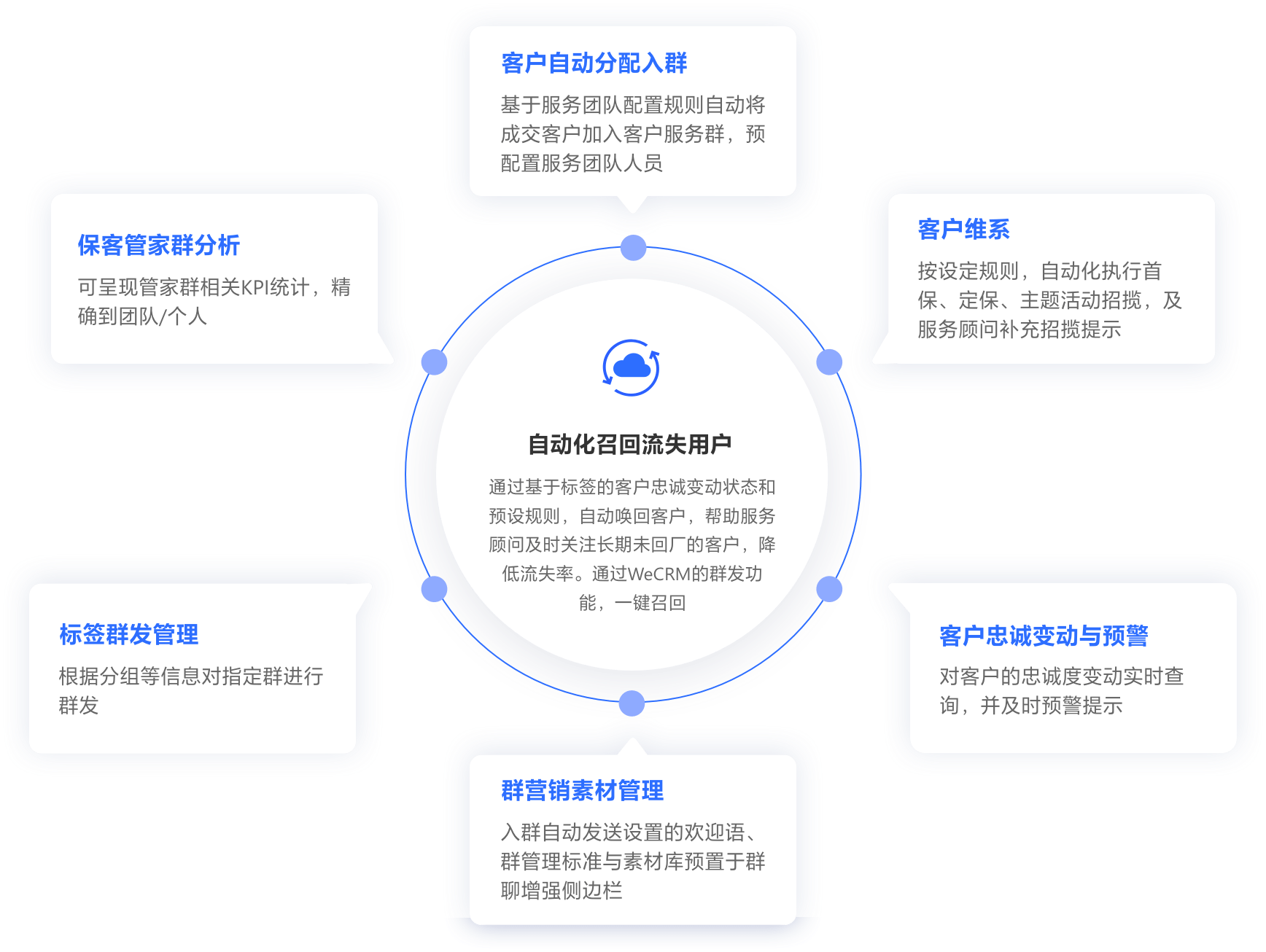 自动化保客管家群、交付管家群建立;通过自动化营销规则服务客户